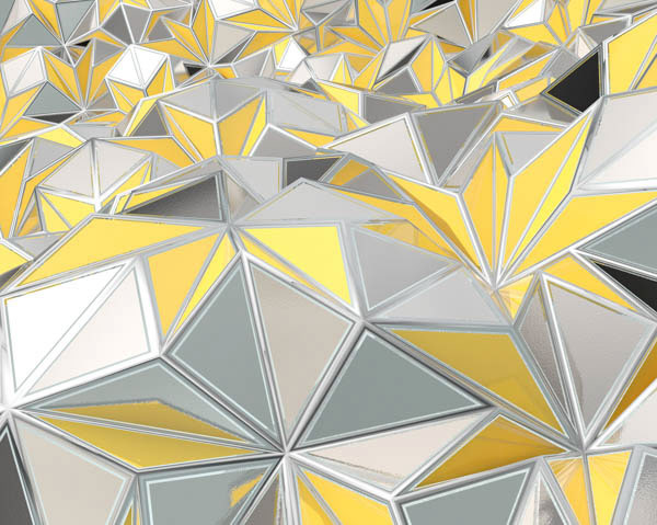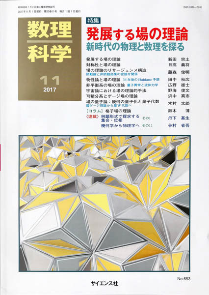 今月号の表紙では非周期タイリングと折り紙の物理シミュレーションを使って構成しています.Ammann-Beenker 非周期ひし形タイリングの各タイルに対し,ひし形を半分に割るような中央線を引き,タイリングのエッジと中央線を折れ線として平面を折り立体を構成しています.