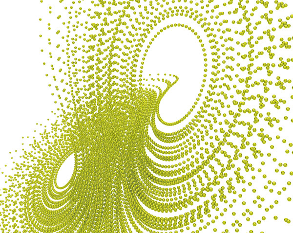今月の表紙はローレンツ方程式と呼ばれる常微分方程式の解軌道を数値計算し,それをもとに描画しています.ローレンツ方程式は簡単な式でありながら不思議な振る舞いをすることが知られており,その軌道の状態はストレンジアトラクタとも呼ばれています