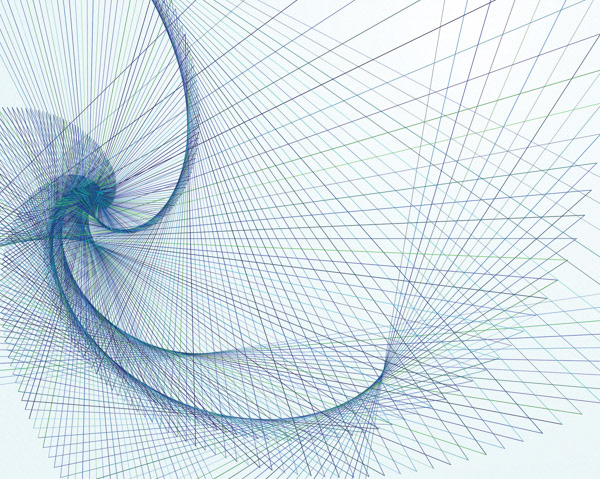 正多角形をルールに従って再帰的に描画しています.この頂点の軌跡は対数らせんを描いています.