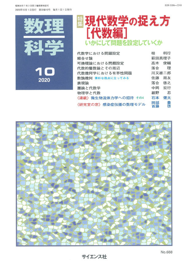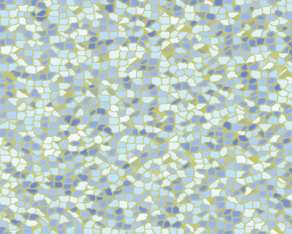 空間上の点集合に対し,近傍にある点との距離の 2 等分線を引いて空間を区分ける分割方法をボロノイ分割と呼びます.空間上の格子点をランダムにずらして点をとれば,そのボロノイ分割は石を敷き詰めたような自然なテクスチャを生成します.今回の表紙では Lp ノルムを使って距離を定義し,ボロノイ分割を描いています.