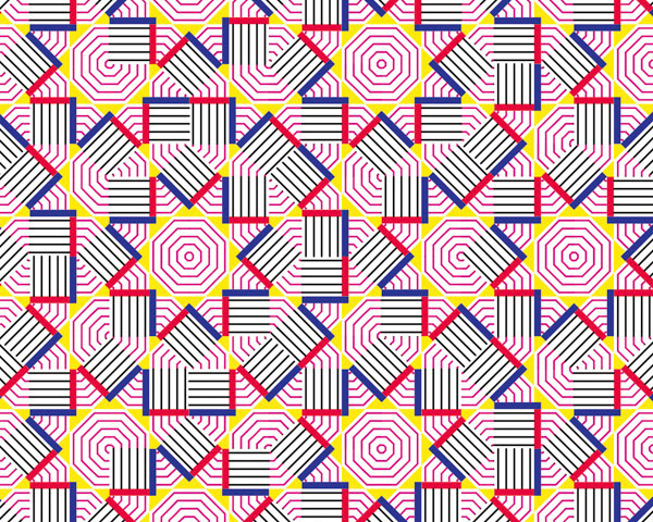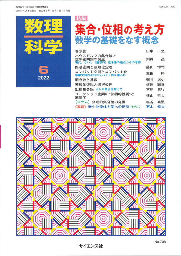 今回の表紙は Ammann-Beenker タイリングと呼ばれる準周期タイリングをもとに,模様付けられたタイルによって構成されています.このタイリングは 8 回対称性を持つ非周期なタイリングで,さらに 4 方向のグリッドの双対によって得られますが,このタイリングの模様にはその性質が表れています.