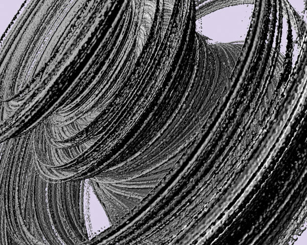 今回の表紙では四元数上に拡張したジュリア集合を描いています.四元数の切断面として実 3 次元空間をとり,ボリュームデータからジュリア集合を計算してメッシュデータに変換し,3D レンダリングしています.