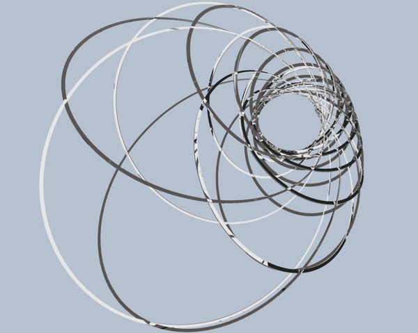 3 次元空間内でトーラスに反転変換を施すと,Dupin サイクリッド曲面に変換されます.また反転変換は円円対応であることから,トーラス上の円はサイクリッド上の円に移ります.今回はトーラス上の Villarceau 円を反転変換したサイクリッド上の正円からモデリングしています.
