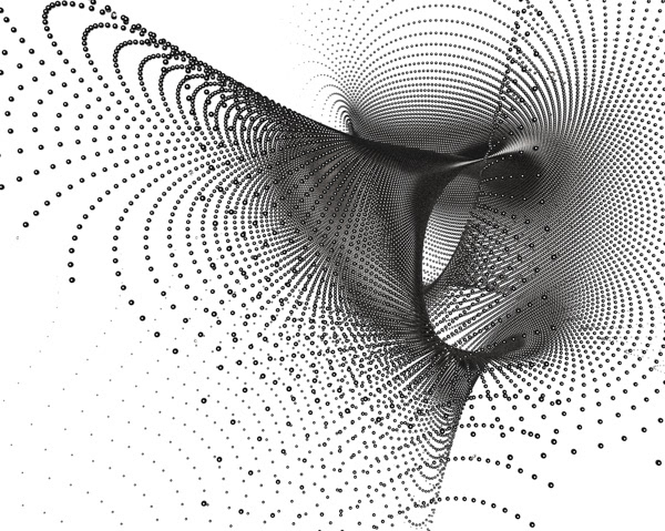今回の表紙はクリフォードトーラスと呼ばれる 4 次元空間内の 2 次元多様体上の点列から作成しました.このトーラスは 3 次元球面上に存在しますが,これに 4 次元回転を施し,ステレオ射影によって 3 次元空間内に移しています.4 次元回転は四元数の積によって実現することができます.