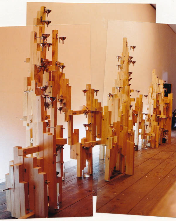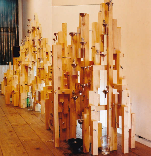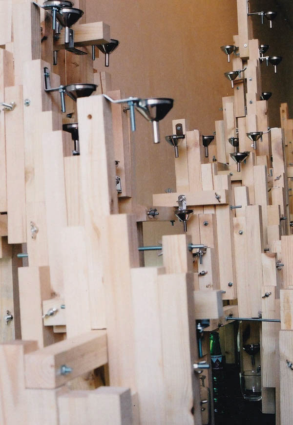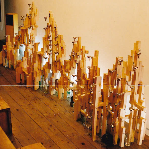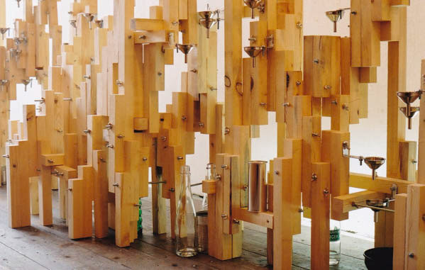 Wooden construction with dripping water / 水滴と木の構成によるインスタレーション